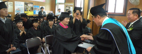 상설시장내 상인들을 대상으로 3개월 동안 진행해온 상인대학이 지난 27일 시장내 상인교육장에서 졸업식을 가졌다. 43명 졸업생 외 상인대학 명예학장 김석환 홍성군수, 박경모 전문교육팀장, 홍성군의회 김원진 의장, 변명식 원장이 참석해 졸업을 축하했다.