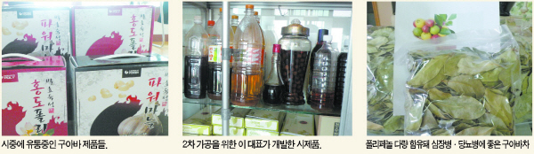 여기에 만족하지 않고 이 대표는 구아바 효능을 살린 2차 가공을 통한 제품화를 위해 동분서주 하고 있다. 전국을 돌며 줄기세포 연구원, 분재ㆍ발효기술 전문가들을 찾아 조언을 듣고 틈나는 대로 제품 개발을 위해 연구해 시제품을 만드는 등 구아바를 2차 가공산업으로 발전시키기 위해 끊임없는 노력을 펼치고 있는 것이다. 이 대표가 지금까지 개발한 제품은 구아바 꿀, 술, 와인, 차, 식초 등 종류가 수십여가지나 된다. 하지만 시간적ㆍ경제적 부담으로 인해 경상도 등 타지역에 구아바 원료를 제공하는 조건으로 연구ㆍ개발한 시제품에 대한 아이디어를 제공해야 하는 안타까운 현실에 부딪쳤다.