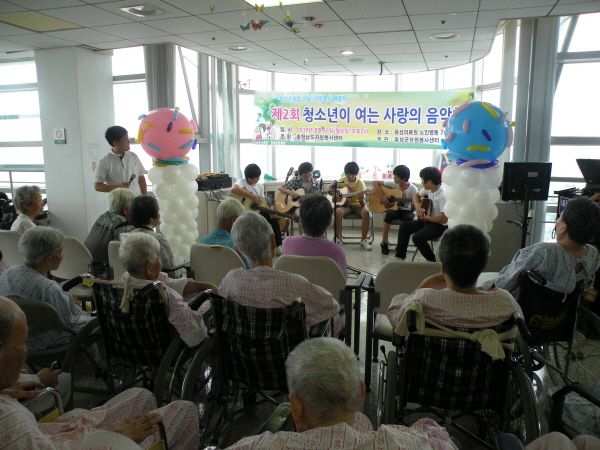 홍성군자원봉사센터(센터장 이동춘)는 제2회 청소년이 여는 음악회를 개최해 입원중인 어르신들의 마음에 따뜻한 감동을 전했다.