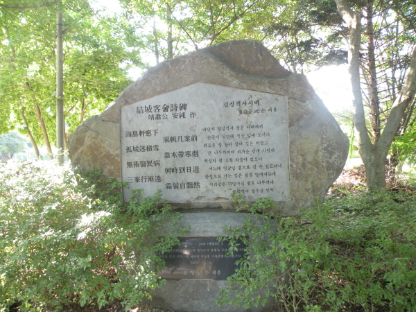 은행나무를 거쳐 초등학교 정문 옆 에는 '결성객사시비(結成客舍 詩碑)'가 세워져 있다.