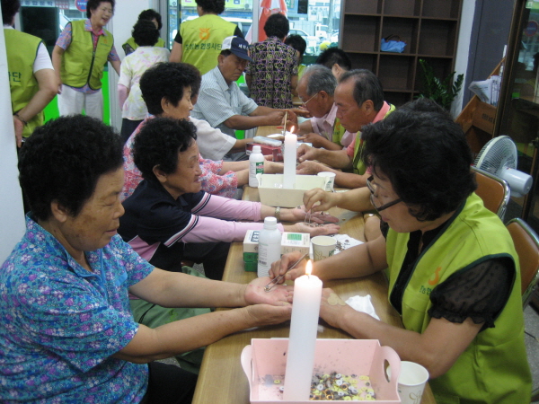 이날 복지센터를 방문한 어르신들은 고려수지침 요법학회 홍성지회(지회장 황선준)와 홍성농협 수지침 사랑모임(회장 이석춘) 회원, 부녀회(회장 김길남) 회원 등 20여명의 봉사자들이 제공하는 수지침, 이미용, 발맛사지, 건강관리실 이용 등의 서비스를 받았다.