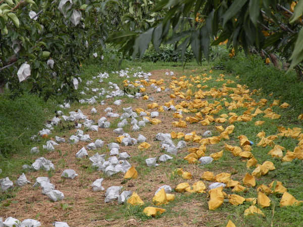 은하면 거산마을의 배나무 과수원에는 배가 떨어져 과수원의 땅 바닥이 노랗게 변해버렸다. 나무에 달려있는 성한 배는 손으로 셀 수 있을 정도 밖에 남지 않아 피해가 심각해 수확을 앞둔 과수농가의 피해는 예상을 뛰어 넘어 피해가 엄청날 것으로 보인다.