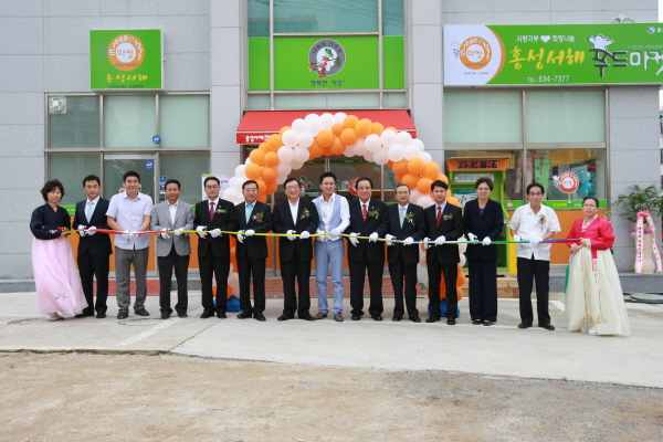 '사랑 기부, 행복 나눔 홍성서해푸드마켓'(공동대표 곽정욱ㆍ김구)이 지난 1일 오후 3시 개점식을 갖고 본격적인 운영에 들어갔다. 이날 홍성농협주부대학 한소리 풀물단의 풀물공연을 시작된 개점식에서는 한국사회복지협의회 김득린 회장과 충남사회복지협의회 김수진 회장, 영농조합법인풀무원 신준수 대표, 자연마춤주식회사 이종현 대표에게 감사패를 전달했으며, 김석환 군수와 홍성출신의 탤런트 윤용현 씨를 홍보대사로 위촉했다.