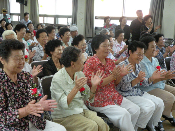 이날 생신 축하공연으로 펼쳐진 한빛무용단, 마마댄스 등 홍성농협 주부대학 공연 봉사단의 공연과 목화유치원 유아들의 사자소학 별달걸이, 타악연희단 굿쟁이의 충청 웃다리 공연을 관람한 어르신들은 흥겨움 속에 즐거워했다. 이어 생신케이크 불을 끄고 생신선물과 함께 다과를 즐긴 어르신들은 "일년내내 오늘 같이 행복했으면 좋겠다"며 기쁨을 감추지 않았다.