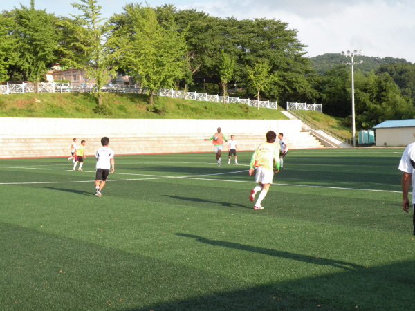 새롭게 지어진 축구장에 도착하자 초록잔디가 반기며 밟아보고 뛰어보고 싶게 만든다. 지금은 텅비었지만 몇일 뒤면 전국각지에서 모여든 축구인들로 가득 채워져 내뿜을 뜨거운 열기가 벌써부터 전해져 오는 듯하다.