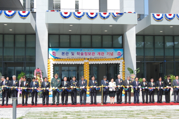 이날 개관한 본관 및 학술정보관은 예술적 감각의 큐빅디자인으로 설계돼 건축면적 3272㎡(990평), 연면적 1만 7639㎡(5336평)에 지상 9층 규모로 건축됐다. 본관에는 입학처, 교무처, 학생지원처, 청운 역사관, 대외협력처, 기획처 등 그동안 각 강의동에 흩어져 있던 행정부서가 한곳에 모여 업무의 효율성을 기할 수 있게 됐다. 또한 최첨단 시설의 학술정보관은 보존서고, 일반열람실, 영상음향자료실 등 최신 전자장비를 구축해 세계각국의 정보를 손쉽게 수집해 홍성군민의 정보교류의 장으로 활용될 수 있도록 할 계획이다.