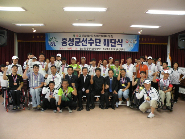 홍성군장애인체육회는 지난 16일 홍성군장애인복지관(관장 김호현)에서 제16회 충남장애인체육대회 해단식을 갖고 지역의 명예를 드높인 임원과 선수들의 노고를 격려했다.