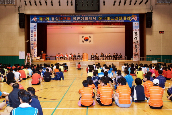 지난 11일, 12일 양일간 홍성내포배 전국배드민턴대회가 홍주문화체육센터와 홍성고등학교 체육관, 홍성중학교 체육관에서 열렸다. 홍성군배드민턴연합회(회장 차경래)가 주최, 주관하고 홍성군과 홍성군생활체육협의회가 후원했다. 홍성내포축제와 연계해 전국에 홍성의 특산물 판매 및 관광상품을 홍보하여 홍성경제에 이바지하고자 기획된 이번 대회는 전국에서 470팀이 출전했다. 대회는 남자복식과 여자복식, 혼합복식으로 30대, 40대, 50대, 연령별 구분, A, B, C, D급별로 구분해 경기가 치러졌다.