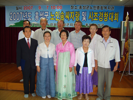 홍성군과 대한노인회충남도연합회 홍성군지회(회장 이상호)는 지난 7일 홍성군노인사회복지관에서 군내 노인회 회원과 임직원 등 100여명이 참석한 가운데 ‘2007년 노인 솜씨자랑 및 시조경창대회’를 개최했다.