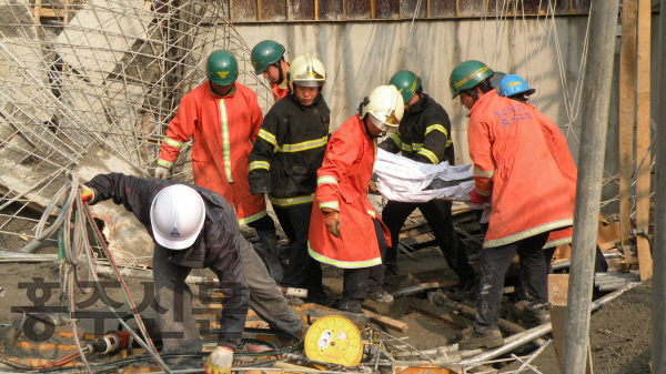 지난 21일 오전 10시30분 경 홍주중 다목적 강당 신축 공사현장에서 체육관 2층 무대천장 부분의 구조물이 무너져 내려 일하던 인부 조모(73․예산)씨가 콘크리트 더미에 매몰돼 사망하고 노모(47) 씨 등 2명이 다쳐 인근 병원으로 옮겨졌으나 경상을 입은 것으로 확인됐다.