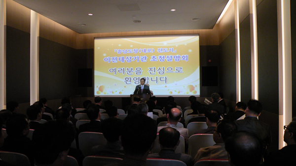 지난 19일 충남도청 내포신도시로 이전 의향을 표명한 136개 기관, 단체 관계자 100여명이 참석한 가운데 신도시 홍보관에서 유관기관 초청 설명회가 개최됐다.
