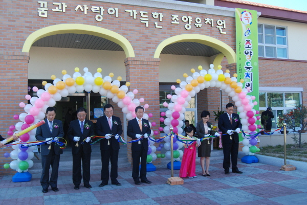 유아교육의 요람이 될 공립단설 조양유치원(원장 장진옥)이 지난 2일 개원식을 가졌다. 지역 내 첫 공립단설유치원인 조양유치원은 홍성읍 소향리 30-7번지 일원에 21억 4800만 원의 예산을 투입해 연면적 1688㎡(1층 900㎡) 규모로 건축됐다. 유아들의 건강을 위해 친환경 자재 및 소재를 사용해 지상 2층 규모로 최신설비로 단장된 유희실, 수면실, 보건실, 급식실, 조리실, 자료실, 원무실 등의 부대시설을 갖추고 있다.