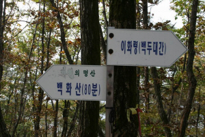 따뜻한 햇살이 온 산을 비출 때 쯤 오늘 대간 길 중 제일 높은 백화산(1063.5m) 에 오른다. 문경 땅을 향해 살포시 내려앉은 봉황을 닮았다고 하는 백화산은 아마 하늘에서 내려다보면 이화령과 시루봉으로 뻣어 내린 양 날개를 곱게 접으며 문경시를 향해 곤두박질치는 형상이 아닐까 생각한다. 헬기장을 지나서부터 대간 길은 고도차 없는 낙엽 보송한 숲길로 변한다. 걷기에 참 좋은 돌 뿌리 하나 없는 부드러운 길이라 전혀 다른 세상에 온 기분이다. 두려움과 생사의 무서움에 덜며 지나온 문장대의 암릉 구간과 대야산의 아찔한 로프구간, 희양산의 암벽 구간 등 그 험한 구간에서는 결코 맛보지 못했던 걸음의 쾌락을 오늘 이곳에서 음미한다.