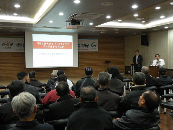 이용진 센터장은 설명회를 통해 "석면광산 지역 주민들의 건강증진 및 예방을 위해 한걸음 한걸음 나아가고 있다"며 "석면에 위협받는 우리 환경에 대해 인식하고 예방하기 위해 마련된 자리"라며 석면의 유해성 및 주의사항에 대해 설명했다. 이어 한국환경공단 조석연 강사의 석면구제법 설명과 유유테이진 김인협 강사의 호흡치료법, 한국웃음치료 교육협회의 최승혜 강사의 웃음치료가 진행됐으며 홍성군보건소의 금연클리닉이 이어졌다.