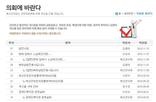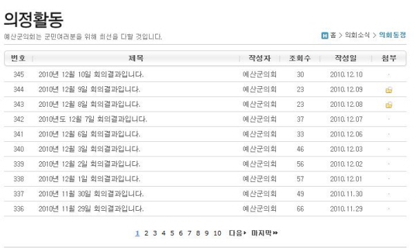 이와는 달리 인근 예산군의회는 홈페이지가 군민위주로 활성화 되어있는 것을 확인할 수 있었다.