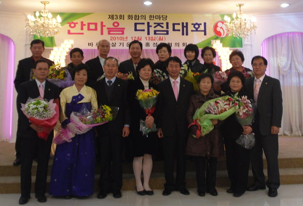 지난 13일 바르게살기운동홍성군협의회(회장 박종갑)가 주관하고 홍성군이 후원한 '2010홍성군바르게살기운동 한마음 다짐대회'가 동원예식장에서 개최됐다.