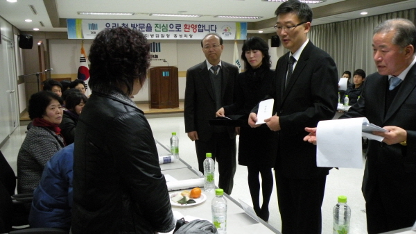 이어 김종민 지청장은 "부임한 이후 범죄피해자 지원강화에 역점을 두고 있다"며 "범죄피해자 지원센터와 긴밀한 협조관계를 통해 불의의 피해로 고통 받는 피해자들을 위해 최선을 다 하겠다"고 격려했다. 또한, "범죄피해기금법이 통과되어 앞으로 검찰청 1조5000억 예산 중 약 7~8%가 범죄피해자들을 위해 쓰일 것"이라며 "올해 출범된 법을 통해 범죄피해지원기금을 적립하여 쓰일 예정이다"고 밝혔다.