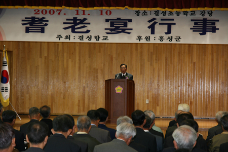 [결성] 경로효친 사상을 고취하고 전통문화 보존·전승을 위한 기로연(耆老宴) 행사가 10일 오전 11시 결성향 주최로 결성초등학교에서 열렸다.