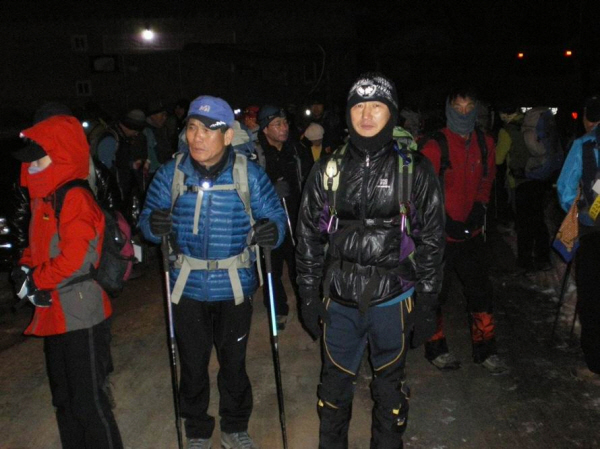 달빛에 눈이 부시도록 반짝이는 눈길을 따라 02시30분 출발한다. 안생달 이정표가 시작하는 지점에서 개울을 건너 임도를 따라 올라가면 작은 차갓재에 이르고 이정표에는 대미산 2시간30분, 우측은 안생달 50분, 직진은 황장산 1시간을 알려준다. 헬기장을 지나 바위 구간인 무명봉을 두어 번 지나고 험난한 밧줄구간을 힘겹게 오르면 황장산(黃腸山.1077.3m) 정상에 05시경 도착한다. 바위 봉우리들로 이루어진 정상은 사방으로 전망이 아주 뛰어나다. 북으로는 단양팔경중 여러 명소를 거느린 도락산(964.4m)이고, 동북으론 첩첩 산줄기 너머로 소백산(1439.5m)의 장쾌한 능선이 아득하다. 그러나 정상에서는 하얀 눈 만 보이니 아쉬움이 크다. 황장(黃腸)이란 이름에서 짐작할 수 있듯이 이 산은 조선시대 질 좋은 소나무의 대명사인 황장목(黃腸木)이 많이 자라고 있어 봉산(封山)으로 지정되었다. 흔히 춘향목이라 불리는 황장목은 나이테가 누렇게 황금빛을 띤다하여 그 이름을 얻었다. 나무의 뒤틀림이나 갈라짐이 없어 궁궐의 목재나 왕실의 관이나 배를 만드는데 주로 썼다. 황장산의 또 다른 이름은 작성산(鵲城山)이라고도 한다. 황장산 동북쪽을 흐르는 문안골엔 고구려 성으로 추정되는 작성(鵲城)흔적이 남아 있다. 국립지리원의 지형도에 나오는 '황정산(皇庭山)' 이란 지명은 '임금이 거니는 정원' 이라고 해석하고 있지만 이는 일본이 천황이 거니는 뜰 이길 바라는 마음에서 임의로 지어낸 것으로 해석한다.
