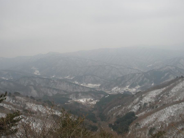 백두대간 남한구간의 중간지점인 차갓재에서 용트림하는 대간의 줄기는 힘차게 솟구치어 백두대간의 정기를 받아 산하를 호령하는 표상이다. 첩첩 산중인 한국의 산줄기가 그렇게도 도도하게 흐르는 모습이 어찌나 좋은지 역시 대한민국은 금수강산이다! 고산자김정호의 대동(大東)여지도가 하루아침에 이루어진 것이 아니듯 그분의 발길 따라 일천육백여리를 따라가 보자. 이곳 차갓재가 대간 길 중간에 자리한 지점이다. 새벽 02시10분 생달리에 도착하니 하얀 눈이 제법 많이 쌓였다. 생달리는 산다리, 새터, 안산다리, 약사정, 차갓재, 안생달 등 의 자연마을로 이뤄졌다. 산다리는 산과 달만을 볼 수 있는 두메산골 이라는 설과, 마을 어귀 다리에서 사람이 떨어졌는데도 살았다하여 '산다'라고 이름이 붙여졌다는 설이 있다. 오미자를 원료로 한백주를 제조하는 양조장은 세월 따라 이층 양옥집으로 바뀌었고 한가로운 마을의 전경은 어느새 다른 시골처럼 변해가고 있다.