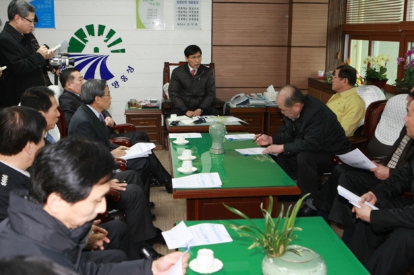 군은 지난 4일 군청대강당에서 구제역 방역을 위한 긴급 기관장협의회 회의를 소집해 김석환 군수를 비롯한 관내 각급 기관장 30여명이 참석한 가운데 효과적인 구제역 방역 방안에 대해 논의했다.