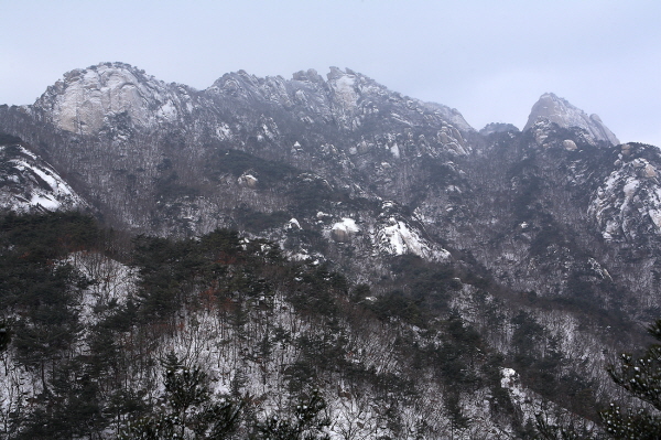 신묘년 첫날을 가족과 함께 보내고 둘째 날은 신년 첫 산행을 하기로 하고, 설악산과 북한산을 고민하다가 북한산으로 결정했다. 북한산은 서울 북쪽에 위풍당당한 기상(氣像)으로 하늘 높이 우뚝 솟아 있다. 서울의 진산(鎭山)이자 우리 모두의 산이다. 북한산의 주봉 백운대(白雲臺)의 높이는 해발 836.5m이다. 그러니까 높이만 따진다면 1000m가 넘어야 행세께라도 할 수 있는 거산(巨山) 반열에 끼지 못한다. 그렇더라도 북한산은 명산이다. 명산이라도 그냥 명산이 아니다. 우리나라 '오악(五嶽)'에 드는 명산이다. 옛날부터 우리나라는 오악이라고 하여 이름 난 산 다섯 곳을 꼽아 왔다. 북쪽의 백두산, 동쪽의 금강산, 서쪽의 묘향산, 남쪽의 지리산, 그리고 중앙에 삼각산이 그것이다. 삼각산은 북한산의 옛 이름이다. 이쯤되면 북한산에 무관심 했던 사람들도 관심을 가질 만하지 않은가. 한데 묶어 웅장, 신비, 수려하다고 밖에 달리 표현할 길이 없다. 보고 있노라면 정수리가 찡해지고 몸 전체가 저려오는 전율(戰慄)을 느낀다. 이것을 산의 정기(精氣)라고 하는 것일까. 그렇다면 북한산은 분명 민족의 영산(靈山) 백두산으로 부터 백두대간을 통해 한맥(韓脈)의 정기를 맥맥이 이어받고 있음에 틀림없다. 아, 참으로 입에 담기조차 외경스러운 북한산이여! 북한산은 뭐니 뭐니 해도 백운대를 정점으로 만경대와 인수봉이 창출하는 백악의 조형미가 압권이다. 이 세 개의 거대한 암봉(巖峰)들은 삼각형의 절묘한 형세로 어우러져 삼각산이라는 이름을 얻었고, 쪽빛 하늘을 금방이라도 꿰뚫을 듯이 기세등등한 모습으로 우뚝 솟아 있다. 백운대는 주봉답게 의젓하고, 인수봉은 꿋꿋한 남성미를 한껏 뽐내고 있으며, 만경대는 인간들의 섣부른 접근을 거부라도 하듯 톱날처럼 날카롭게 서있다. 하긴 북한산은 인수봉이 아니더라도 산 전체에서 우람한 남성미가 철철 넘친다.
