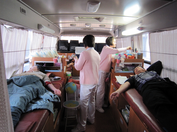 홍성군청 직원들이 군청 정문 앞 헌혈버스에서 지난 10일 '사랑의 헌혈행사'를 개최했다.