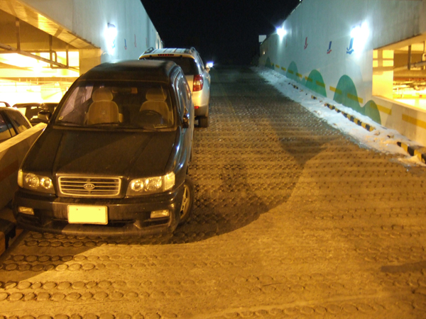 최근에 신축한 아파트들은 그나마 사정이 낫다. 시공된 지 20년 가까이 된 홍남초등학교 근처의 한 아파트를 찾아가봤다. 퇴근 시간이 지난 늦은 저녁시간이라 주차장에 차량이 가득했다. 일부 차량들은 사람들이 이동하는 보도블록에 일렬종대로 세워져 있었다. 어린이들이 주차된 차량 사이로 지나는 모습이 아슬아슬하다.