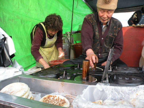 40년째 호떡을 만들어 팔고 있는 김응석(79) 할아버지의 호떡 집에는 불이 났다. 장 보러 나온 사람들이 호떡을 찾아 추위를 달래고 허기를 채우기 위해 모여들었기 때문이다. 김 할아버지의 호떡에는 특별한 맛이 있다. 후덕한 인심과 40년간 한길을 걸어온 명인(?)의 손 맛이 담겨있기 때문이다.