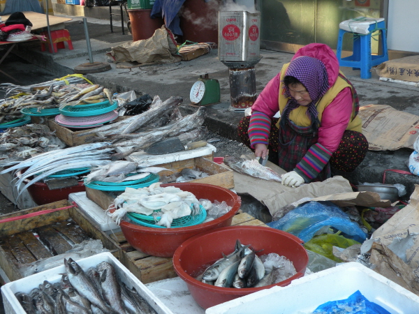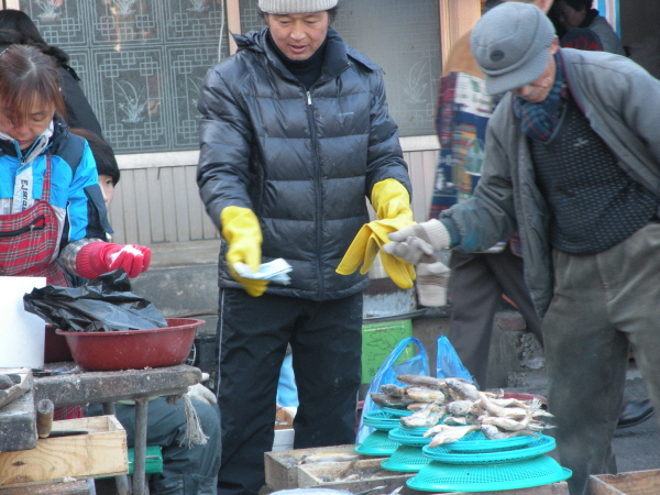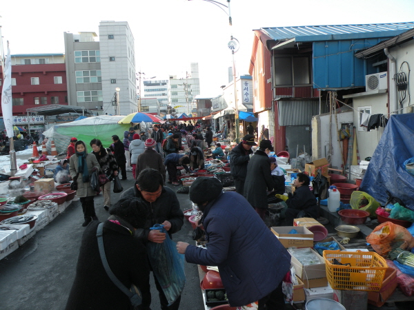 시장 한복판에서는 수산물 가격을 알리는 한 아저씨의 목소리가 쩌렁쩌렁 울리고 짐을 가득 실은 수레를 밀고 가는 아저씨의 비켜달라는 핀잔 소리, 싸고 좋은 물건을 사기위해 발품을 팔아가며 시장 곳곳의 물건들을 찾아다니는 시골 할머니와 아낙네들의 모습, 혹한으로 인해 연탄 불을 피운채 털 목도리를 얼굴까지 끌어올려 돌돌 말고 앉아 이제나 저제나 물건이 팔리기만 기다리는 좌판 할머니의 "싸게 줄 테니 사라"고 손짓하는 모습 등이 한데 어우러지며 올 설명절 또한 어김없이 사람 사는 냄새와 함께 우리들의 삶속에 찾아 왔다.