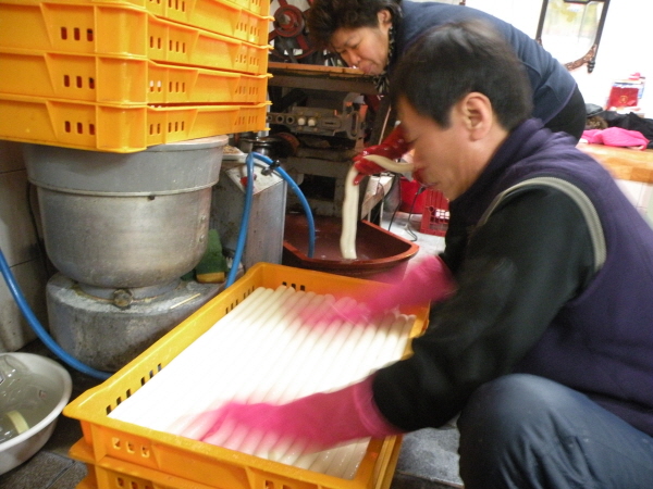 다음 날인 27일, 상설시장 내 원앙떡집(대표 최성근ㆍ58, 김태란ㆍ54)을 찾았다. 모락 모락 김과 함께 하얀 속내를 드러내며 뽑아져 나오는 가래떡이 먹음직 스럽다. 1985년 떡집을 시작해 두 남매를 키우며 부지런히 살아온 최성근ㆍ김태란 씨 부부는 새벽 5시면 어김없이 나와 하루 일과를 시작한다. 설 명절이 되면 가래떡을 만들기 위해 쌀 300kg이 사용된다는 최 대표는 올 한해 하얗고 매끄러운 가래떡 처럼 모든 일이 잘 풀리길 바란다고 말한다.