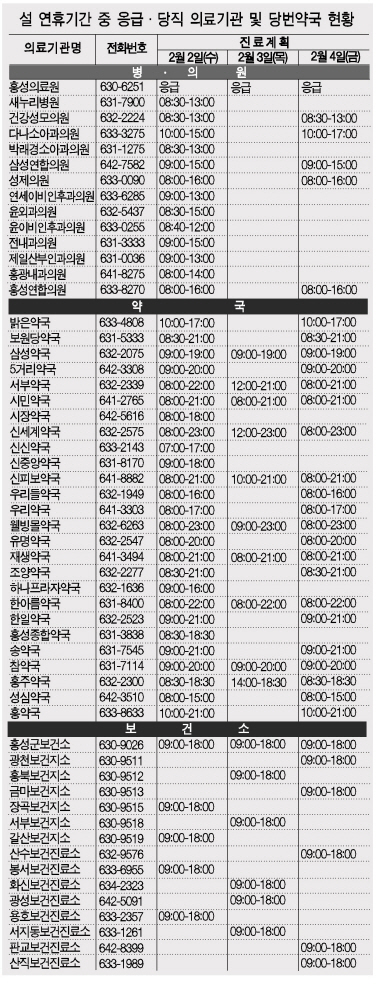 설 연휴기간 중 응급ㆍ당직 의료기관 및 당번약국 현황