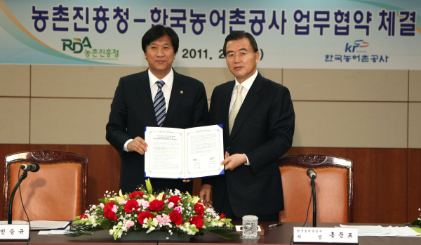 이를 계기로 농어촌공사와 농촌진흥청은 △강소농 육성사업 추진을 위한 컨설팅 △지역개발 및 기반조성 △향토산업 및 특화품목 육성과 도농교류 분야에서 상호 협력해 나가기로 했다. 또한 해외농업개발과 신재생에너지, 간척농지 활용방안 등 미래 역점사업에서도 상호 교류를 활성화해 나갈 계획이다.
