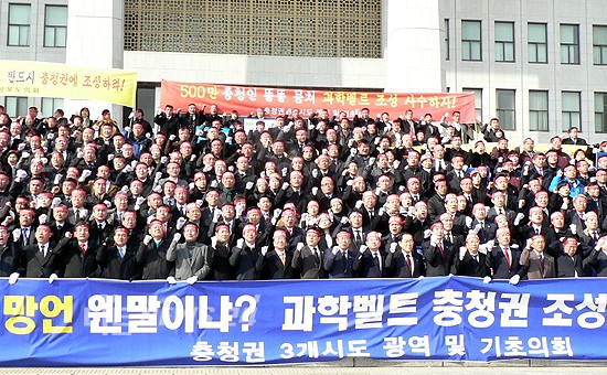 홍성군의회(의장 김원진)는 국제과학비지니스벨트의 충청권 입지를 위해 국제과학비지니스벨트 사수 결의대회에 참석했다. 국제과학비지니스벨트의 충청권 입지여부가 최근 논란의 대상으로 떠오르자 군의회 김원진 군의장, 이병국 부의장, 이상근 의원, 조태원 의원, 김정문 의원, 이해숙 의원은 지난 15일 서울 국회의사당 앞에서 개최된 '국제과학비지니스벨트 사수 결의대회'에 참석해 해당 '과학벨트'의 충청권 입지를 정부에 강력 촉구했다.