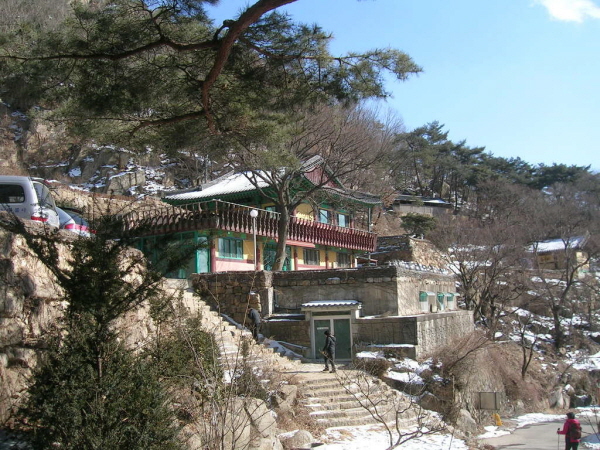 암릉길 산행을 좋아하는 나는 오늘도 관악산 8봉 능선을 오르기 위해 관악산 정문을 지나 500여 미터 진행을 하면 우측으로 경로구간이라는 이정목 표시가 되어 있는 코스를 따라 오른다. 좌측에 있는 쉼터 정자를 뒤로 하고 곧 바로 치고 오르는 등로는 잠시 숨고를 틈도 주지 않고 가파르게 암릉길로 이어지는데, 이 암릉 구간이 군데군데 얼어 있어 몸도 풀리기 전 긴장을 하게한다. 힘겹게 비탈진 암릉을 오르고 나니 나즈막한 능선이 나타나고, 오늘따라 날씨가 맑아 하늘은 파랗고 멀리 삼각산 일대가 시야에 들어오고 도심의 빌딩 숲도 섬세한 모습으로 조망된다. 또한 가야할 연주대 방향은 군데군데 눈 덮인 모습이 한 폭의 산수화다. 암릉을 지나면 부드러운 육산의 능선길이 한동안 이어진다. 오늘도 많은 사람들이 산에 오른다. 어떤 생각들을 하면서 오르는지 궁금하다. 산은 즐기는 대상이 아니다. 산은 사랑의 대상이다.