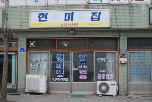 △현미집 = 욕쟁이 할머니가 따뜻하게(?) 맞아준다. 재료가 떨어지면 그날 장사도 마무리 되는 '손맛'이 으뜸인 칼국수 집이다. 겨울에 가장 맛좋고 싱싱한 '굴'을 오직 겨울에만 사용하며 굴 칼국수를 선보인다. 여름에는 굴을 사용하지 않고 콩국수와 비빔국수가 굴 칼국수의 부족함을 채워준다. 아침에 공수해온 싱싱한 해물만을 이용하며 국물 맛이 깔끔한 것이 일품이다. 특히 갓 삶아 나온 돼지머리고기의 쫀득함과 광천토굴의 오젓과의 만남은 소주 한잔을 불러낸다. 칼국수 5000원, 머리고기 9000원. 광천역전 앞 골목. 641-1792.