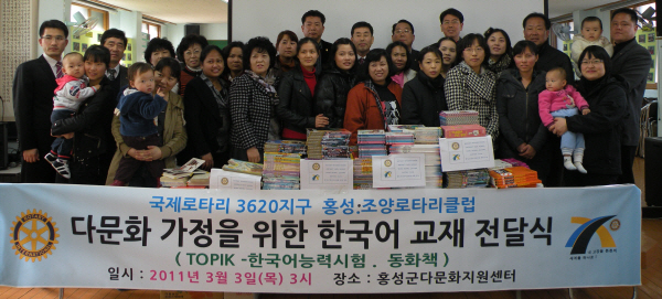 지난 3일 오후 3시 다문화가족지원센터에서 홍성․조양로타리 클럽 주최로 다문화 가정을 위한 한국어 교재 전달식이 열렸습니다.