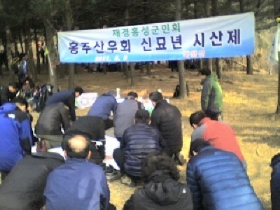 재경 홍성군민회(회장 최건환)산하 홍주산우회(회장 이원창)가 지난 6일 북한산에서 시산제를 가졌다. 해마다 고향인 홍성의 상징인 백월산에서 가졌던 시산제를 올해에도 백월산으로 예정했다. 하지만 고향인 홍성에 구제역이 발생한 관계로 구제역 예방에 동참하는 차원에서 서울의 북한산으로 장소를 변경해 실시했다. 이날 회원들은 서울지하철 6호선 독바위역에서 합류하여 불광사 위쪽 솔밭에서 가진 이날 시산제를 가졌고, 조부영, 신두호, 박상현 최규철, 김영태, 장승조 원로회원을 비롯해 김용해 충효예실천운동본부 총재, 박동일 전 재경홍성고총동문회장, 최건환 재경군민회장, 최정숙 광천산악회장, 조중형 재경홍성고총동문회장, 이왕복 재인홍성고총동문회장, 복봉규 재경홍동향우회장, 유성순 재경홍성고산악회장 등 100여명의 남녀 회원들이 참석한 가운데 성황리에 마쳤다.