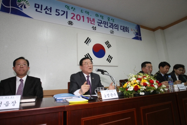 특히 홍성읍 주민과의 대화에서 김 군수는 "오관지구주거환경개선사업에 관한 것은 이미 260억원이 넘어간 상태이나 LH공사의 재정악화로 사실상 사업 실행이 불투명해서 다른 방향을 찾기 위해 대기업 2군데에 설계 도면을 가지고 타진 중이다. 군수가 의지가 없어 추진하지 않는 것이 아니므로 유언비어가 나오지 않도록 조심해 달라"고 당부했다.