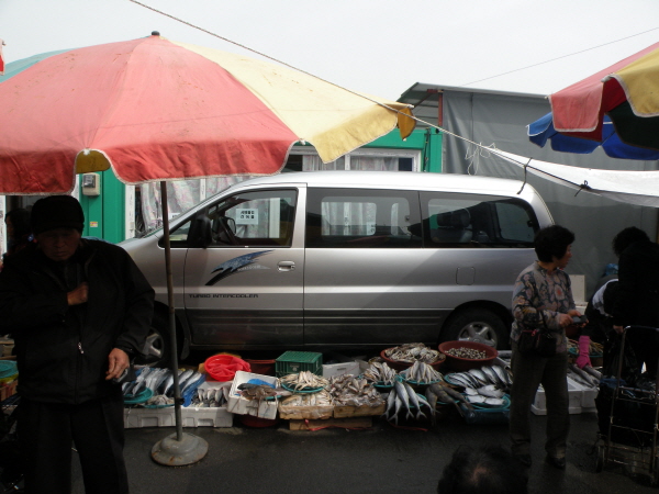 지난 장날(21일), 비좁은 장터에 '떡' 하니 자리 잡은 봉고차! 노점상과 장옥상인들을 한 곳에 한꺼번에 내몰아놓고 "니들끼리 알아서 해라"는 식으로 수수방관하는 군이 정말 답답할 뿐이다.
