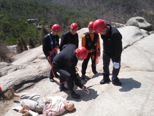 훈련은 △로프를 이용한 인명구조, △바스켓이용 환자 이송법, △급경사 구조방법, △부상환자 응급처치요령 등의 내용으로 진행 됐다.