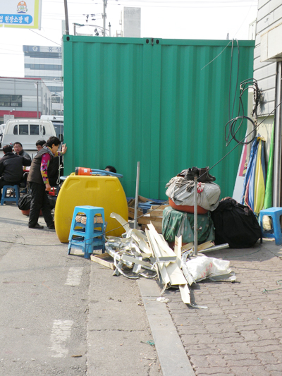 한편 시장에서 만난 컨테이너 상인 김정순(순이네 식당ㆍ63)씨는 "몇 십 년 사용한 거주지를 빼앗기는데 가만히 있을 사람이 누가 있나? 우리 집 앞에는 과일을 파는 노점이 있다. 요즘 장날이면 둘다 서로 미안해하며 장사를 한다. 특히 공무원들의 태도에 화가 난다. 벼는 익을수록 고개를 숙인다고 했는데 군민들 세금 받아먹고 사는 사람들이 고개 빳빳이 들고 나와 빙빙 돌며 이것 치워라, 저것 치워라 하는데 정말 화가 난다. 부여 같은 경우는 미리 노점상들이 장사할 곳을 마련해주고 현대화 사업을 시작했다. 반면 홍성군은 일절 상인들한테 협조를 구하지 않았다. 현재 컨테이너는 임시시장일 뿐이다. 그렇다면 노점상도 컨테이너 상인도 도로가 비좁아 많이 복잡해도 서로 조금 양보하고 같이 사는 길을 찾았으면 한다. 함께 먹고 살아야 하지 않나? 하루아침에 밥통을 끊어 놓으려고 하면 안 된다"고 하소연을 한다.
