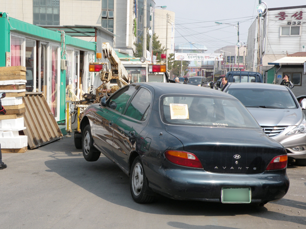 지난 28일 20일 넘게 시장 안에 방치된 불법주차차량이 견인됐다. 마침 군청 경제과에서 공무원 몇이 나와 있었다. 수십 번 신고 된 민원을 처리하려고 나온 것인지 우연의 일치인지는 알 수 없었다.