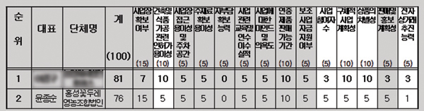 아울러 "지원대상으로 선정된 법인은 참여자수가 단 3명에 불과한데, 우리는 50명 조합원의 참여가 가능하다"며 "어째서 사업참여자 수 부분에 있어서는 2점이라는 근소한 차이밖에 두지 않았냐"며 평가기준의 형평성에 어긋났다는 주장이다.