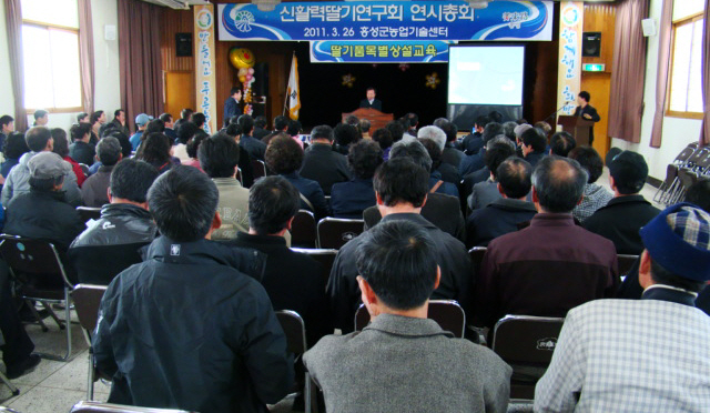 홍성군농업기술센터(소장 전용완)는 지난 26일 신활력딸기연구회 회원 및 딸기재배농가 130여명이 참석한 가운데 딸기육묘관리에 대한 주제로 전문가 초청 품목별 농업인 상설교육을 겸한 신활력딸기연구회 정기총회를 개최했다.