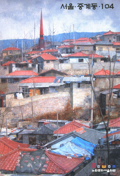이번 이성국 초대전에서 작가는 작품을 통해 우리 주변을 둘러싸고 있는 삶의 진솔한 고백들을 가감 없이 우리들에게 들려주고 있다. 작가는 작품을 통해 세상과 소통하며, 우리들의 삶의 이야기와 끊임없이 만나고 있다. 작가가 작품에서 그리고 있는 '서울시 노원구 중계동 산 104번지 마을'은 1967년 청계천 정비사업과 도심 재개발 사업으로 밀려난 유민들이 하나둘 모여들면서 형성됐다. 현재는 1170가구 3500여명이 거주하고 있다. 지난 2009년 서울시로부터 재개발정비구역으로 지정됐고, 고층아파트 단지 조성을 위한 사업이 진행 중이다.