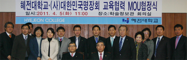 혜전대학(총장 이재호)은 지난 5일 (사)대한민국명장회와 교육협력 MOU를 체결했다고 밝혔다. 이재호 총장은 "이번 협정을 계기로 혜전대학과 (사)대한민국명장회간 학문ㆍ정보ㆍ기술의 상호 교류와 현장 실무형 교수지원, 우수인력 취업연계, 학술정보 및 간행물의 상호교환 등의 연계체계가 확립 될 것으로 기대한다"고 밝혔다. 저작권자 © 홍주일보 무단전재 및 재배포 금지 김혜동 기자 다른기사 보기 페이스북 카카오톡 URL복사 기사공유하기
