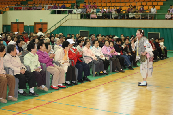 이날 경로잔치에는 800여명의 각 읍ㆍ면의 노인들이 참석했고, 1부에는 각 단체장의 인사말과 사물놀이 공연, 2부에는 각설이공연과 경로잔치 참석자들의 노래자랑이 있었다.