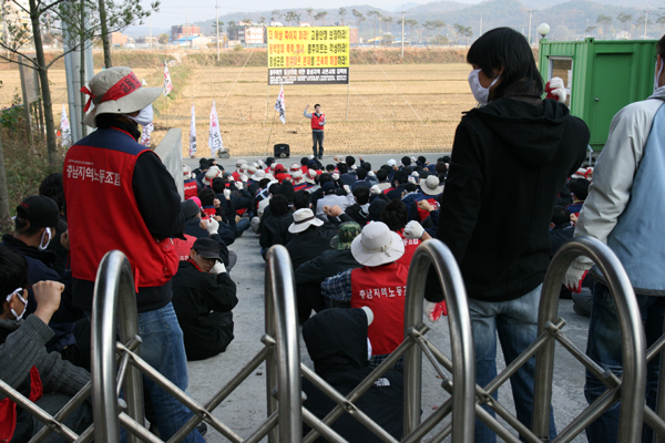 이날 민주노총 측은 홍주미트의 폭력 행사에 대해 “우리 노동자들 편에는 군청도, 경찰도, 검찰도, 어떠한 행정기관도 없다”며 “홍주미트의 박성화, 주흥노 사장은 불법이라는 폭력과 주먹을 앞세운 폭력, 두 가지 모두를 사용하고 있는 악덕, 잔인한 사업주다”고 주장했다.