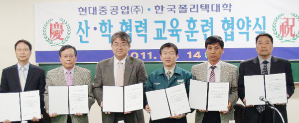 한국폴리텍IV대학 홍성캠퍼스(학장 허광)는 지난 14일 산업현장의 구인난 해결과 취업에 어려움을 겪고 있는 학생들의 취업을 위해 현대중공업(주)과 산학협력 교육훈련 협약식을 가졌다.